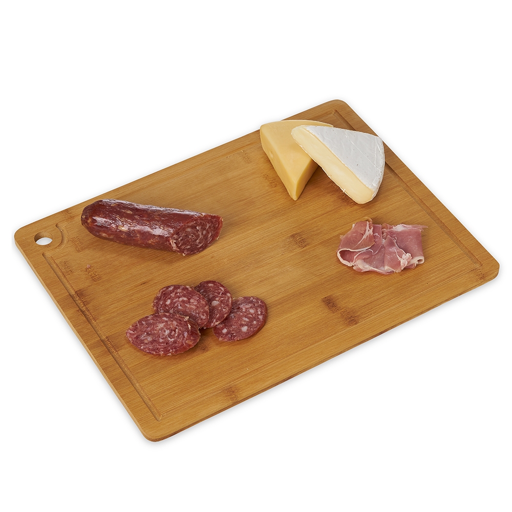 Tábua de corte com canaleta e acesso para gancho.